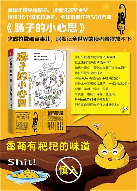 《肠子的小心思》是德国图书界的黑马,口嫌体正直的德国人,一面对粑粑说着“不要不要”,一面看得好污好欢乐。原来,德国人觉得理所当然的马桶竟是痔疮的罪魁祸首;如此现代化的今天,蹲坑这种看似原始的行为竟然还在全世界一半以上的地区保留着,而且这才是大便的正确解锁方式;跟肠子相关的事,不仅有趣,还密切关系到人体的健康状况,一个感觉不好的肠道会让我们感到沮丧,而一个健康的、营养良好的肠道会大大地改善我们的情绪……谁能想到这些奇葩欢乐的内容,竟是一位软萌妹子所写,还一举俘获36个国家和地区读者的心。让我们跟着这本新鲜出炉带着屎味的书,一起开启神奇的消化道之旅吧。海报: